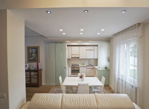 • controsoffitti in soggiorno (per ridurre l’altezza quando risulta sproporzionata rispetto alle altre dimensioni di una stanza); creare un effetto ottico per separare due zone attigue in un unico ambiente; sottolineare un complemento d’arredo;