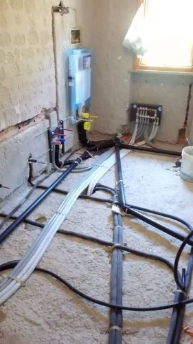Rifacimento tubazioni del bagno, impianti idrici, idraulici e servizi connessi.