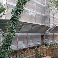 • Coperture temporanee di ponteggi: proteggono il cantiere dai fenomeni atmosferici, in modo che non subisca fermi dovuti al maltempo. Si utilizzano soprattutto quando le opere su cui si interviene sono particolarmente delicate.