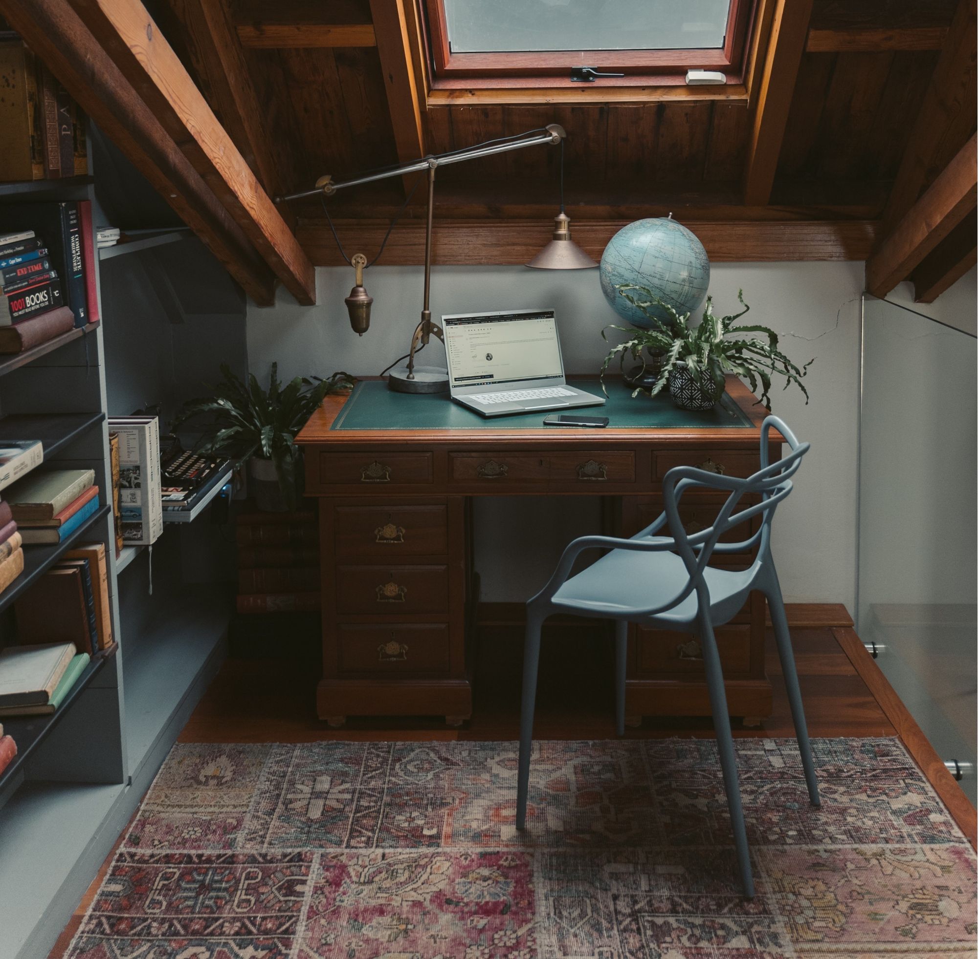 Nessuno spazio in casa, come uno studio anche gestito in maniera minimal, è il luogo decisamente più adatto ad essere arredato con un tappeto vintage. Una zona molto privata e spesso contenuta nelle dimensioni, che racchiude tutto un mondo molto personale e intimo. Qui un accessorio retrò riempie l’intera zona e funge da sfondo a mobili, lampade, libri e quadri, che si amalgamano benissimo in una commistione di stili che si fondono gli uni con gli altri.