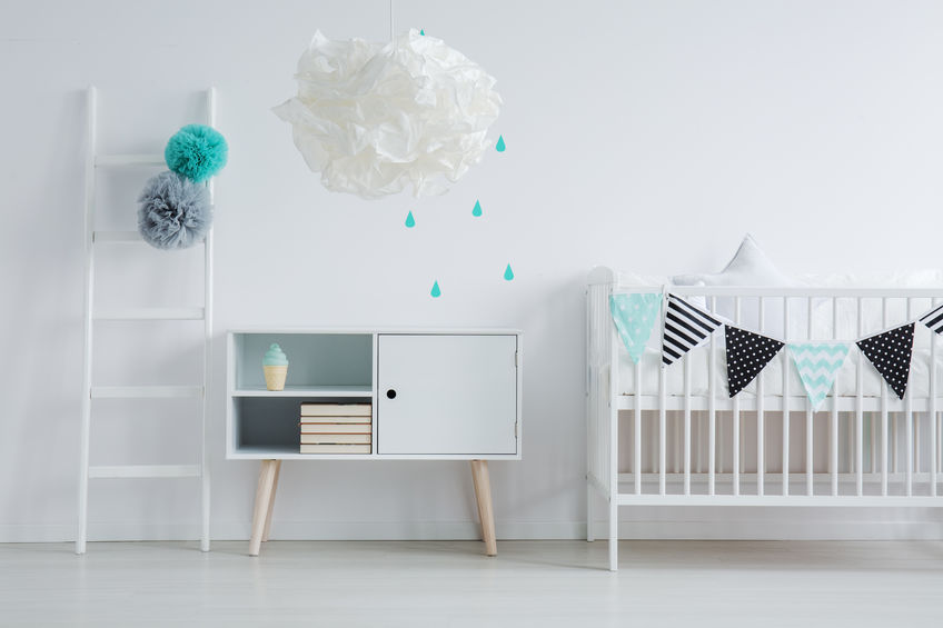 Se il tema delle righe vi piace, ma non volete essere monotoni e ripetitivi con soluzioni d’ambiente già proposte e oltremodo sfruttate, potete ovviare a questo problema, decorando la camera dei bambini con pareti a righe di piccolissime dimensioni e sparse qua e là casualmente su una tavolozza infinita in bianco. Pezzetti colorati fluttueranno in modo armonico in una cameretta allegra e originale.