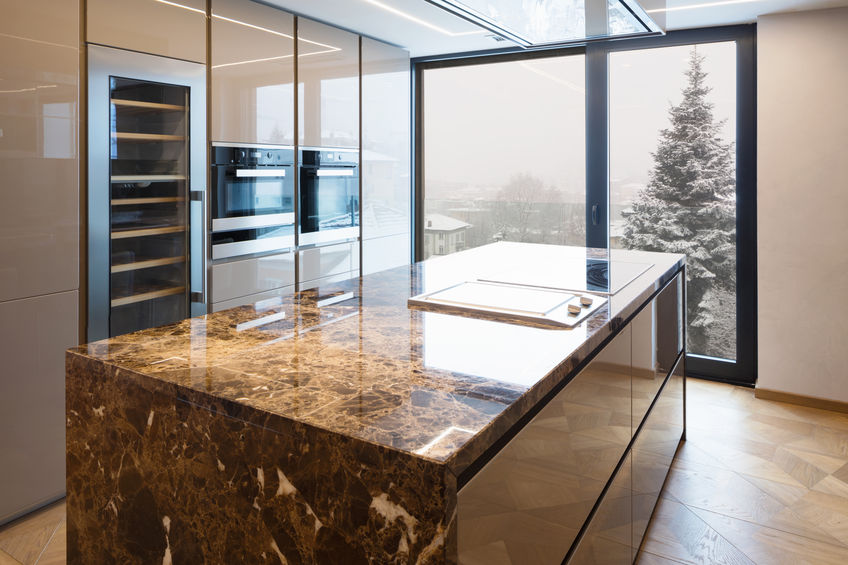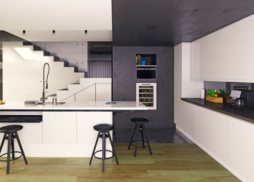 Una cantinetta da incasso a parete va ad integrarsi perfettamente nella cucina divenendo parte dell’architettura che va a dare una nota esclusiva a tutto l’ambiente.
