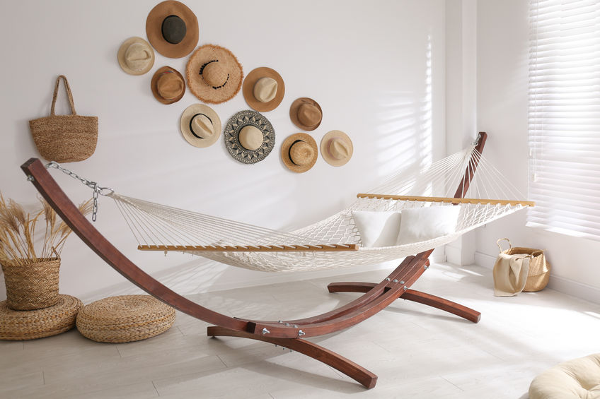 Ci sono diversi modi per installare un’amaca all’interno della propria abitazione, a parete, a soffitto oppure attraverso dei supporti appositi. In ogni caso, considerando il peso che l’amaca deve reggere, bisognerà assicurasi sulle modalità più opportune per un’installazione in sicurezza.