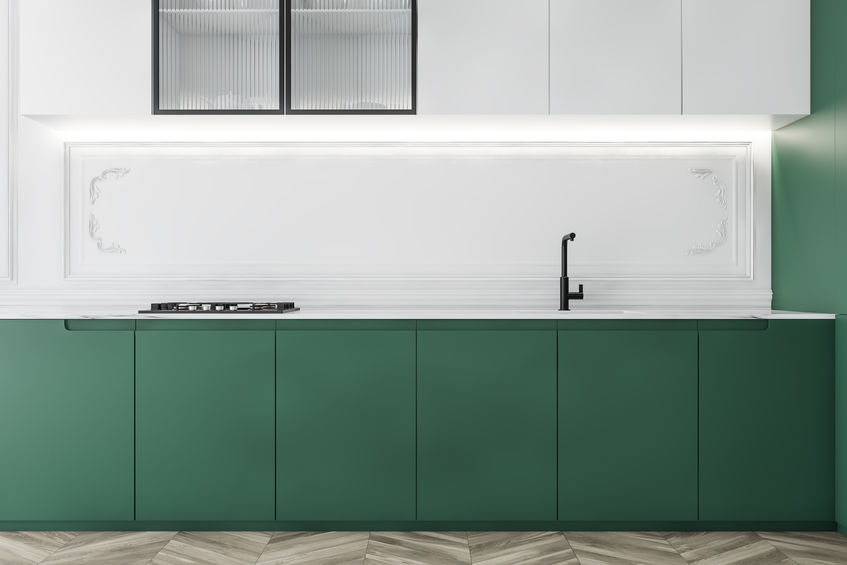 Utilizzare il verde bosco per mobili lineari su sfondo bianco o come tonalità di una parete con mobili chiari è un meraviglioso connubio per realizzare un progetto davvero distintivo.