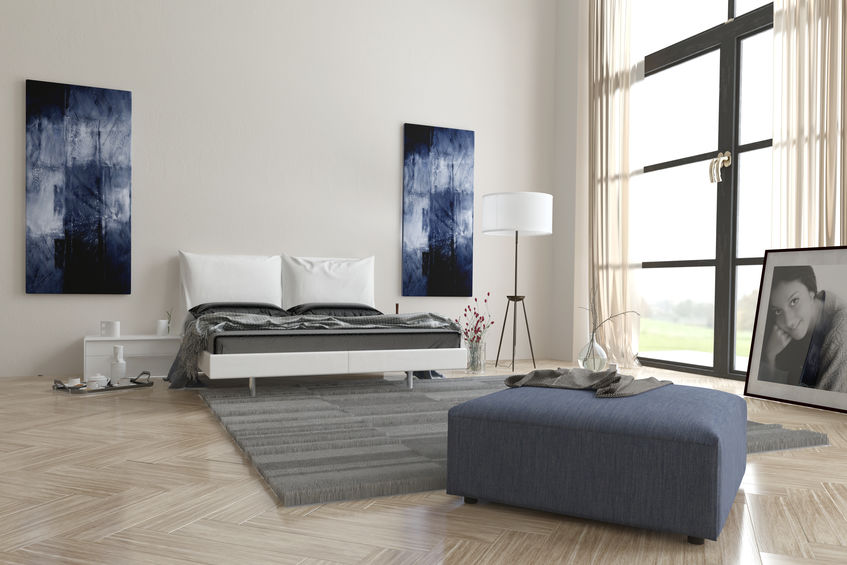 Pouf imbottiti e rivestiti in tessuto sono ideali in questo ambiente poiché aiutano a creare quell’idea di nido accogliente necessaria in ogni camera da letto.