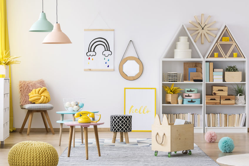 Per rallegrare la camera dei più piccoli qualche pouf colorato o con fantasie è una soluzione molto divertente. I pouf pensati appositamente per bambini sono pratici come seduta da abbinare a tavolini proporzionati per la loro altezza. La creazione di contrasti cromatici rende l’ambiente vivace e gioioso rendendo la cameretta uno spazio in grado di sviluppare la fantasia e la creatività.