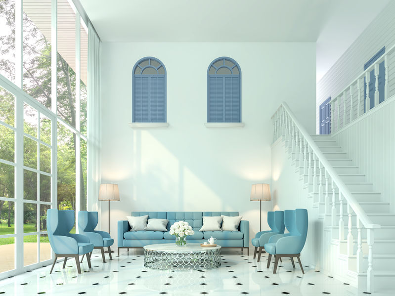 Se l’idea che volete realizzare in un soggiorno è quella di far emergere un’atmosfera irresistibile e colma di fascino, ma che sia al contempo accogliente e ospitale, ecco che l’azzurro calzerà a pennello come scelta del colore principale per un progetto unico della vostra zona giorno. Divani e poltrone abbinate diventeranno un arredo impeccabile associato a pavimentazioni e pareti in bianco. Questo espediente aiuterà nel far emergere maggiormente la colorazione del cielo.