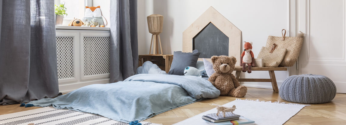 Se si aspetta l’arrivo di un tenero frugoletto l’azzurro è di sicuro uno tra i colori più immediati a cui si va a pensare per decorare e arredare una cameretta ricca di dolcezza per un adorabile baby boy. E’ tuttavia una tinta utilizzata ampiamente anche per ometti che crescono, associata ad adorabili progettazioni di camere per ragazzi uniche e originali. Per rendere l’atmosfera frizzante e sbarazzina, un’opzione è quella di non avvalersi di un letto classico, ma di posizionare direttamente un materasso a terra, in stile montessoriano, e arricchirlo con testiere DIY e piumoni e cuscini di un tenue ma caloroso azzurro.