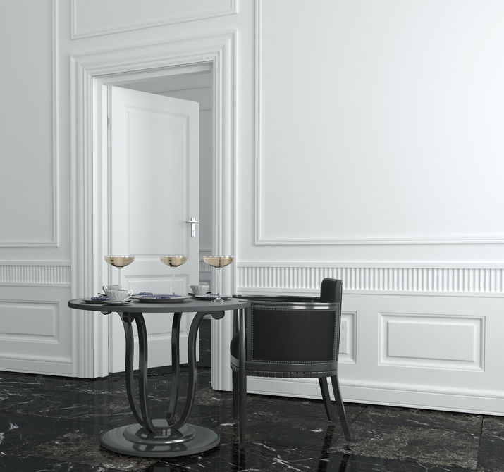 Una volta applicati tutti gli elementi, questi possono essere dipinti in modo da uniformarli alla parete di supporto, rendendo il muro ed il suo decoro una cosa sola. Il disegno classico delle cornici dona un sapore classicheggiante agli interni ma si inserisce bene in ambienti moderni. Grazie all’applicazione di tonalità di tendenza, la boiserie produce un effetto molto suggestivo, una base perfetta per ambienti contemporanei dallo stile sofisticato e senza tempo.