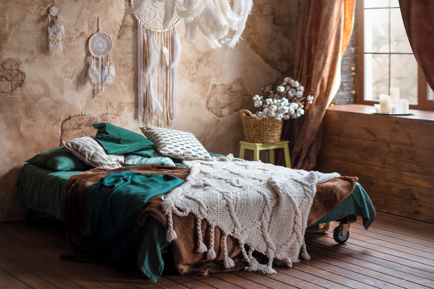 Ulteriore ispirazione per poter arredare una camera matrimoniale, riguarda l’impiego di decorazioni etniche da collocare sopra il letto secondo due modalità: