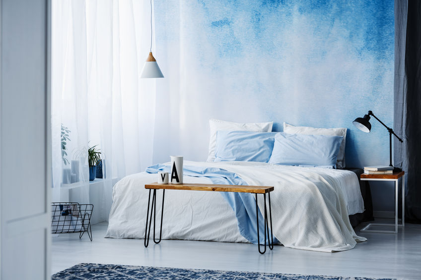 Il monocromatismo è un atteggiamento che molti utilizzano per abbellire e decorare i vari spazi di un’abitazione, in modo particolare in una camera da letto, dove sensazioni di relax e tranquillità devono emergere soprattutto dall’ impiego di poche tinte tenui e pacate. Per rendere questa tematica un pochino più avvincente, uno stratagemma di cui servirsi, è quello dell’utilizzo di un monocolore ma applicato con effetto sfumato e non direttamente a parete ma su una carta da parati materica che riesca a creare l’illusione di avere una nuvola palpabile dietro la testiera del proprio letto.