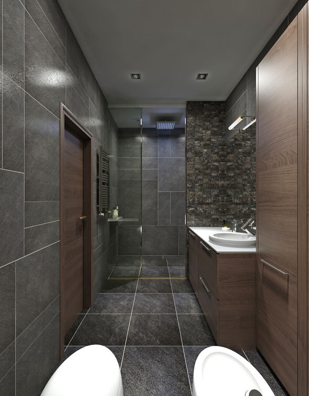 L’escamotage a tutt’altezza è ampiamente utilizzato quando si ha a che fare con ambienti lunghi e stretti in casa, in special modo se si tratta di un bagno che deve essere organizzato, perché l’unico all’interno dell’abitazione. Con un’apertura centrale sarà vantaggioso giocare sulla simmetria degli spazi collocando i servizi su un lato corto e la doccia sull’altro. Frontalmente un mobile con lavabo verrà disegnato in modo da sfruttare i centimetri sino al soffitto e calibrato nelle profondità per poter inserire ciascun elemento senza problemi.