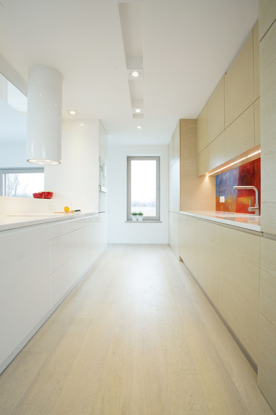 Se l’ambiente lungo e stretto in casa coincide con il vostro angolo cottura, allora una cucina disposta su due lati è l’alternativa ideale per avere spazio di movimento senza dover rinunciare a tutte le comodità indispensabili in questa zona molto vissuta. Lavello e piano cottura possono essere posizionati in sequenza o ancor meglio frontalmente, data la poca distanza da percorrere. La restante area viene allestita, garantendo la massima resa a livello di capienza, con pensili, cassettoni ed elettrodomestici, studiati su misura e molto spesso collocati sino al soffitto.