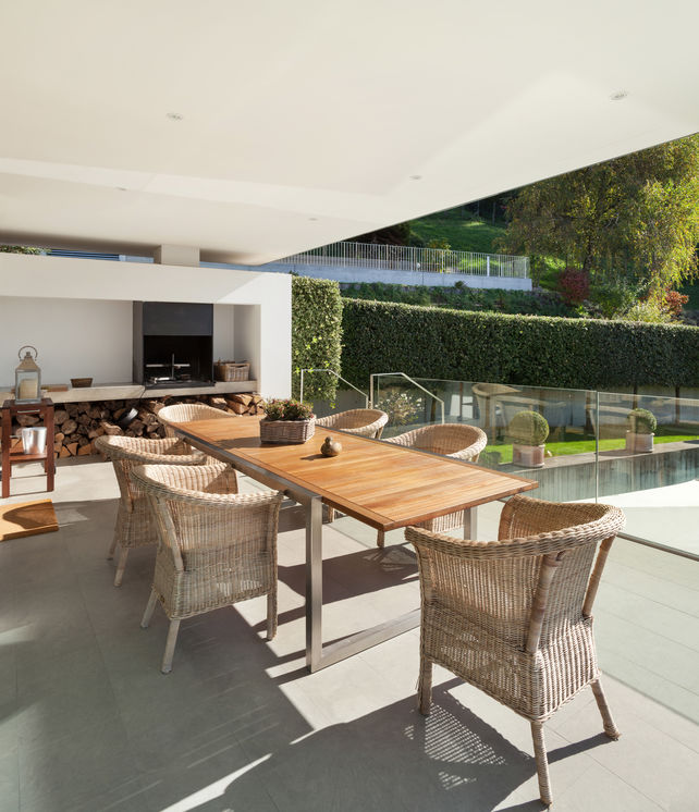 Infine, capire se il tavolo da pranzo sarà riparato da elementi fissi, come balconi soprastanti o mobili, come vele o gazebi, porterà ad individuare i materiali migliori e più consoni per i mobili da inserire.