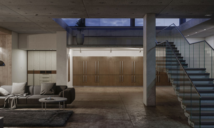 Far entrare lo stesso oggetto strutturale in un corridoio, o ancor più in una zona giorno aperta, ed enfatizzarlo con dimensioni importanti con gradini in cemento, è il modo migliore per ottenere una salita di tendenza in concrete style, che ricorda progettazioni di tipo pubblico, arricchite da elementi accessori come parapetti vetrati e corrimano in acciaio.