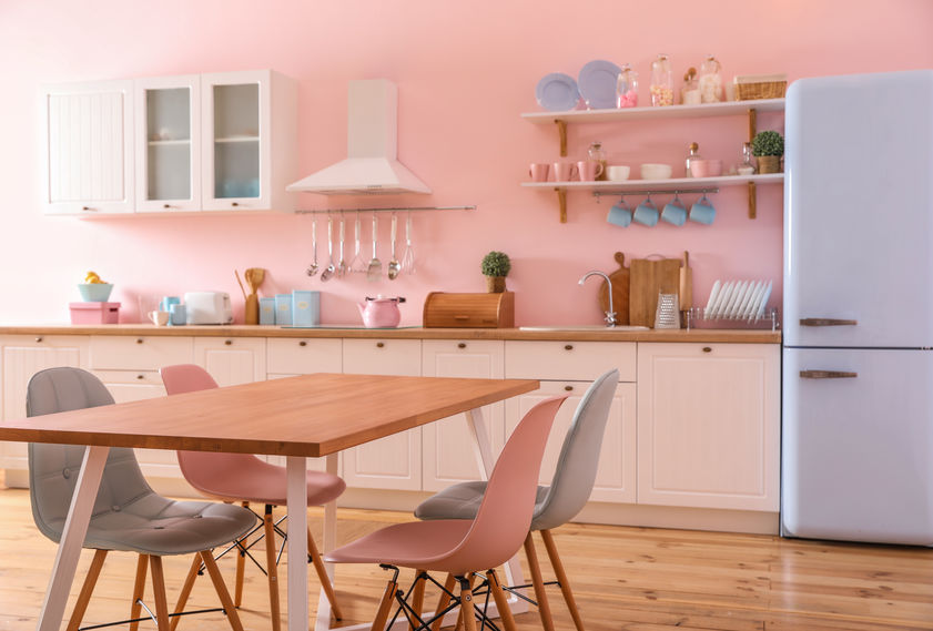 Delicato e femminile, il rosa è un colore piuttosto inusuale per l’arredamento della cucina ma se ben dosato può dare effetti inaspettati. Questo colore può far pensare ad un arredamento infantile ma con gli abbinamenti giusti questo effetto viene scongiurato.