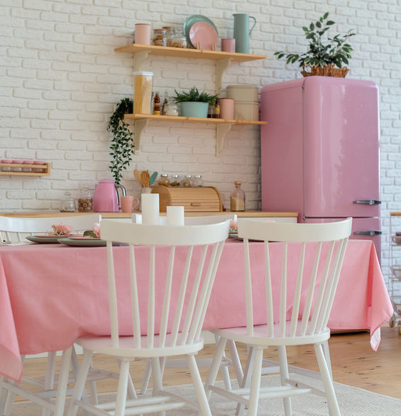 Un frigorifero rosa pastello rende la cucina molto romantica, senza che questa risulti sdolcinata se collocato in un ambiente con pareti e mobili bianchi, riscaldato da alcuni elementi in legno naturale. Cucine caratterizzate dalla prevalenza di colori chiari e da stili come lo shabby chic o il nordico sono dunque ambienti in cui un frigorifero rosa viene valorizzato.