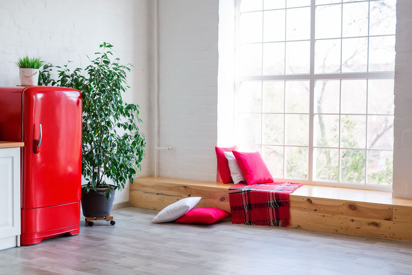 La scelta del frigorifero può essere complicata nelle cucine open space, soprattutto se questo è collocato in una posizione che lo rende visibile dalla zona giorno. Avere un elettrodomestico a vista forse non è il massimo, ma se si tratta di un bel frigorifero colorato allora non deve essere nascosto ma può essere esibito con orgoglio. Anzi, deve essere valorizzato al massimo, ad esempio facendolo risaltare con una carta da parati applicata sulla parete che sta alle sue spalle.