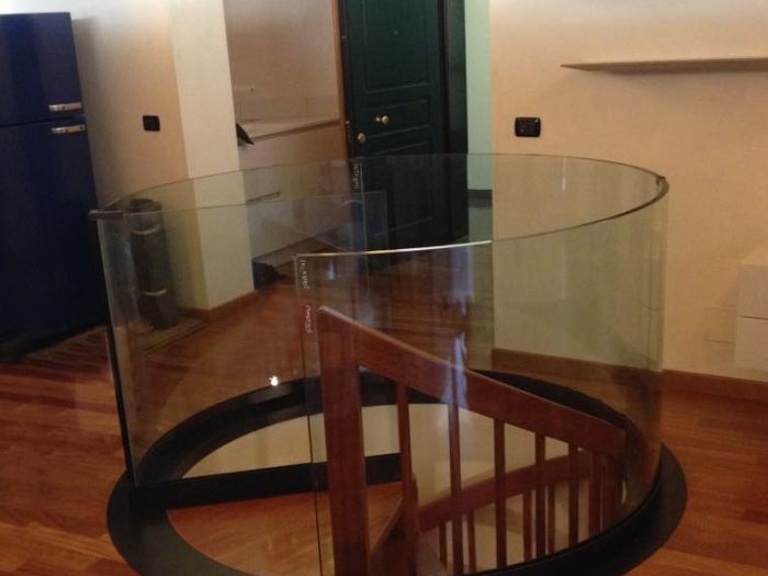 Il vetro, che è un materiale leggero e trasparente, è molto adatto per ambienti poco luminosi o per collocazioni in ambienti molto piccoli. Difficilmente troveremo una struttura realizzata completamente in vetro perchè in genere viene abbinata ad altri elementi, ad esempio possiamo avere i gradini in vetro sostenuti da una struttura in legno o acciaio.