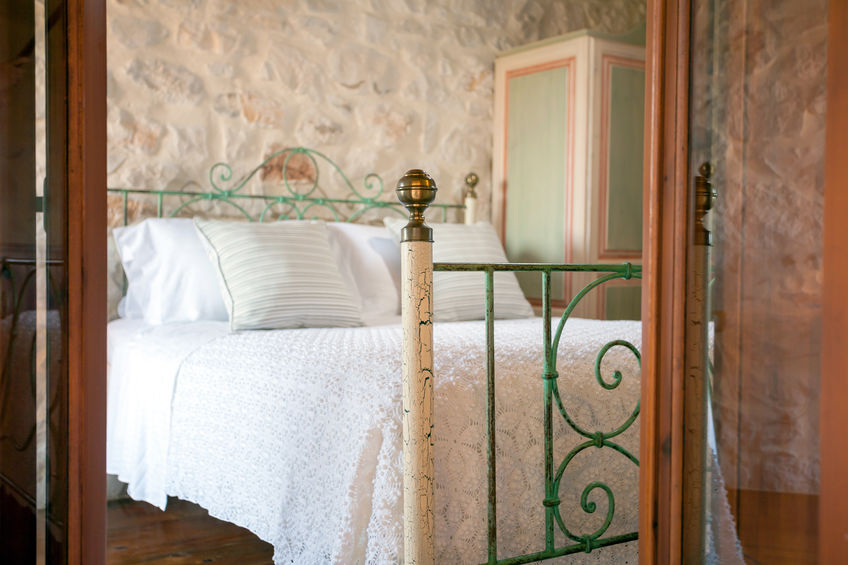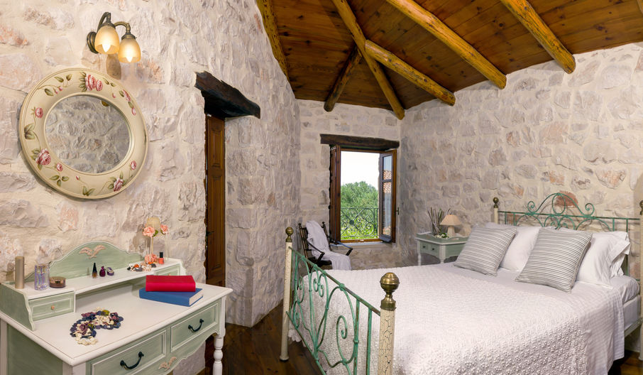 La camera da letto è senza alcun dubbio il luogo che mantiene maggiormente quel sapore antico, tipico di un casolare di campagna con vista mare.
