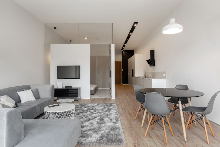 Per spazi di metrature ridotte conviene, invece, optare per degli spazi ibridi, dove la separazione per zone funzionali è data essenzialmente dall'organizzazione dello spazio, risultando quindi meno netta. La zona notte contenuta nel living per essere resa indipendente può essere differenziata, ad esempio, attraverso l'uso dei materiali, l'inserimento di elementi verticali o la disposizione degli elementi d'arredo in funzione dello spazio.