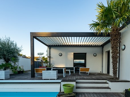 Le pergole addossate bioclimatiche sono invece quelle che sfruttano lame orientabili per regolare il clima all’interno della struttura stessa. I movimenti meccanizzati permettono di regolarne l’apertura e la chiusura assicurando una perfetta ventilazione con un ricircolo d’aria ottimale. La possibilità di sceglierne anche l’inclinazione aiuta ad orientare l’ingresso della luce naturale e di limitarla se eccessivamente invadente.
