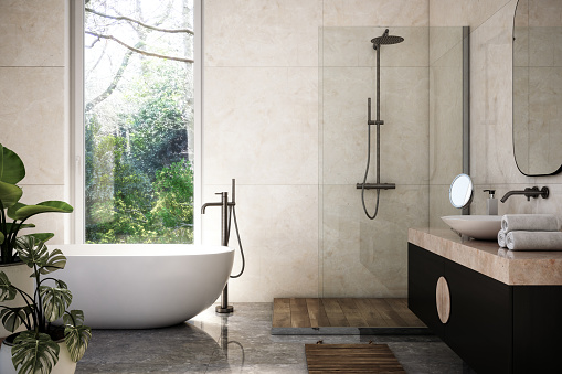 E’ vero che la privacy in una stanza da bagno deve essere sempre e comunque garantita e se la parete divisoria è quella esterna sarà bene avvalersi di una vetrata satinata che soddisfi entrambi gli scopi.