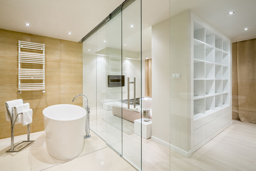 Se le parti che separano sono invece interne, allora un vetro trasparente è senz’altro da preferire per ottimizzare al massimo la miglioria della luminosità. Elementi con micro telaio o a giorno, servono spesso per dividere la zona dei sanitari dal lavello per mantenere una certa distanza, anche solo visiva, e che permetta alla luce entrante di non essere oscurata come succede invece per i tramezzi.