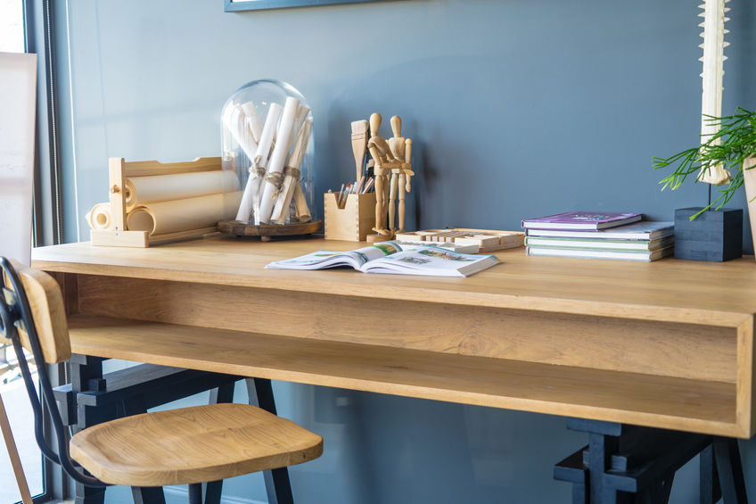 Un nuovo modo di concepire la scrivania di casa, riguarda l’impiego di piano e cavalletti, che dà vita ad una tendenza componibile di grande impatto.
