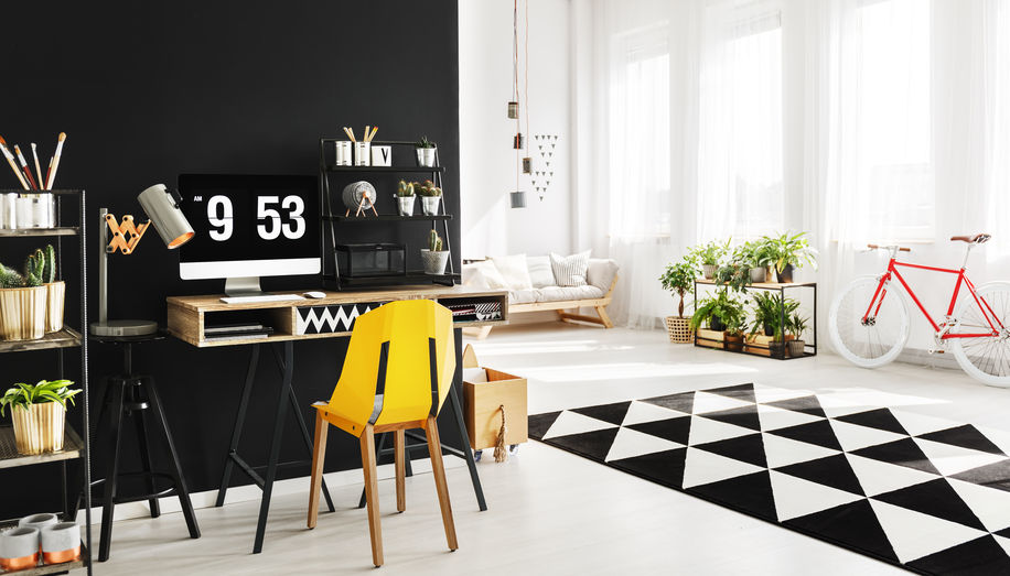 Altra papabile alternativa è l’utilizzo di un unico materiale per la scrivania di casa dove è la combo di colori che fa la differenza.