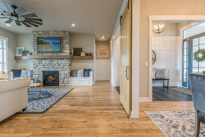 Nella versione colorata, una tipica barn door, trova rinnovato vigore e connota in maniera differente le varie camere di una casa a seconda dello stile che si vuole far emergere. Il gusto campestre è sempre ben evidente ma in una nuance più neutra, questa distintiva porta scorrevole, segue una tendenza trés chic che può essere valutata anche in accordo con arredi lineari e contemporanei tono su tono. Bellissimo il suo inserimento in una cucina per una dispensa ben organizzata, dove insieme ad altri elementi country style, come parquet, parete perlinata e lavello, enfatizza il tema scelto ma lo ingentilisce con un tocco naturale e luminoso dato dal classico colore bianco.