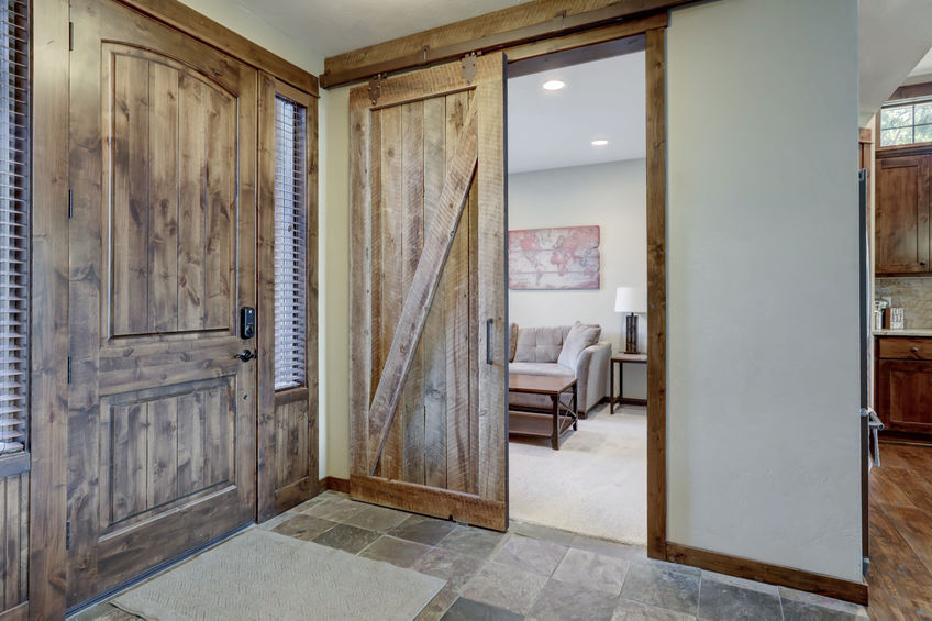 Quasi nella totalità delle realizzazioni con una barn door per interni, è visibile l’impiego di quadri pieni, lisci o appena lavorati da tavole diagonali. Se però il pannello di una porta scorrevole da restaurare può risultare danneggiato o in alcuni casi mancante, abbinare una parte vetrata è un altro metodo per valorizzare l’infisso e renderlo maggiormente utile in ambienti che necessitano di passaggio di luce al loro interno.