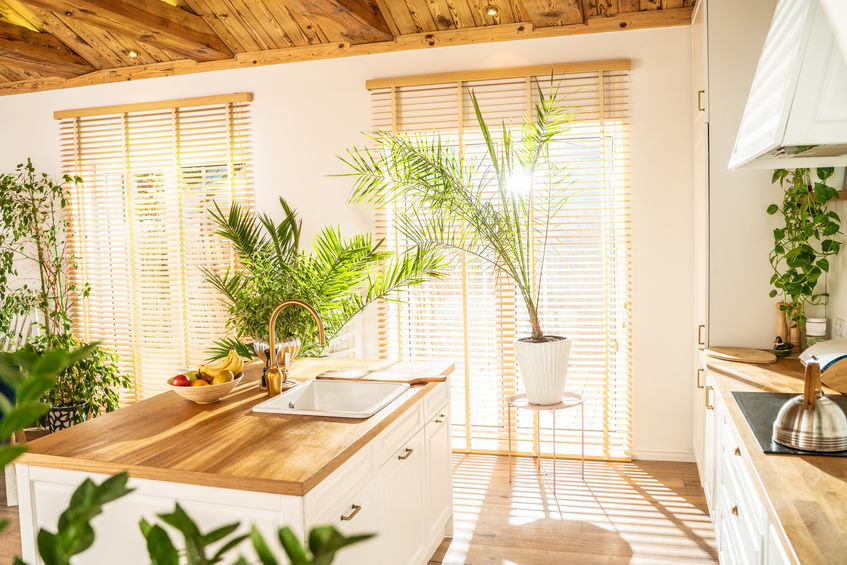 La scelta materica e il colore neutro sono assolutamente indicati quando di intende seguire un’idea green ed eco sostenibile, sia per le modalità tecniche che estetiche all’interno della propria abitazione. Abbinare quindi una tenda a listelli in tinta basica, segue appieno la linea che si deve mantenere, per enfatizzare l’aspetto rustic jungle che già si possiede in casa e renderlo ancor più emblematico e impeccabile nella sua completezza.