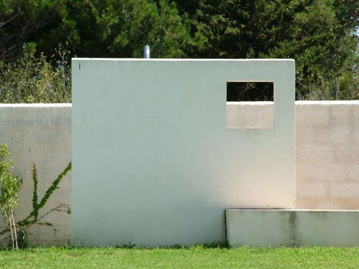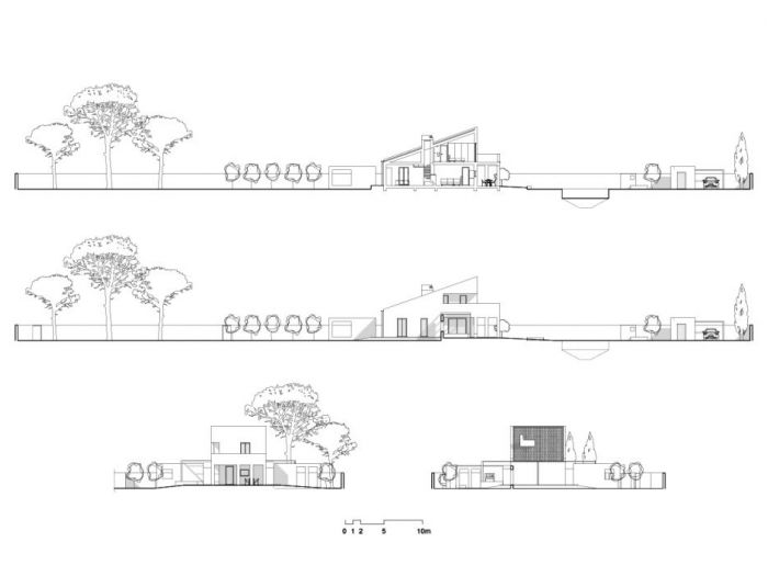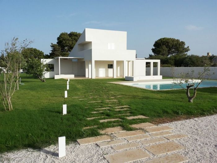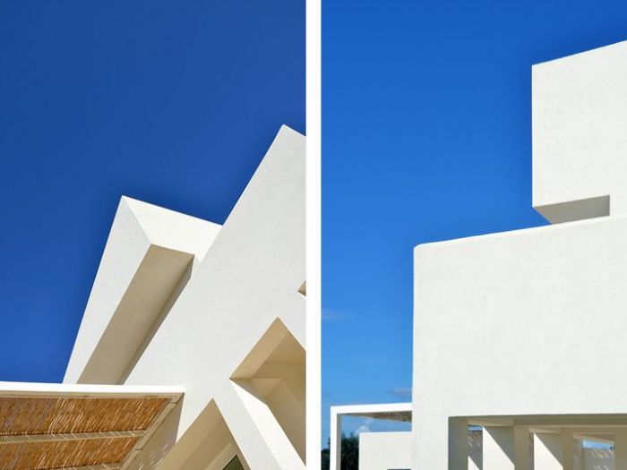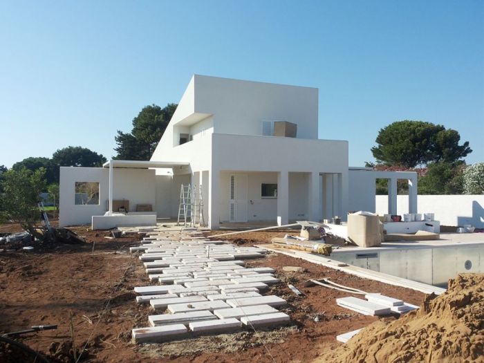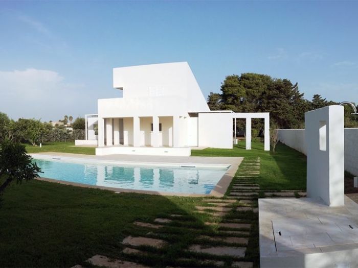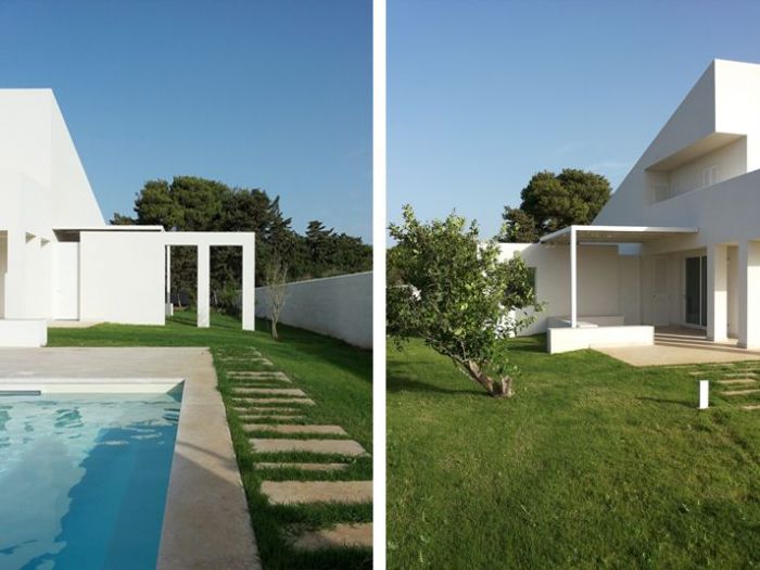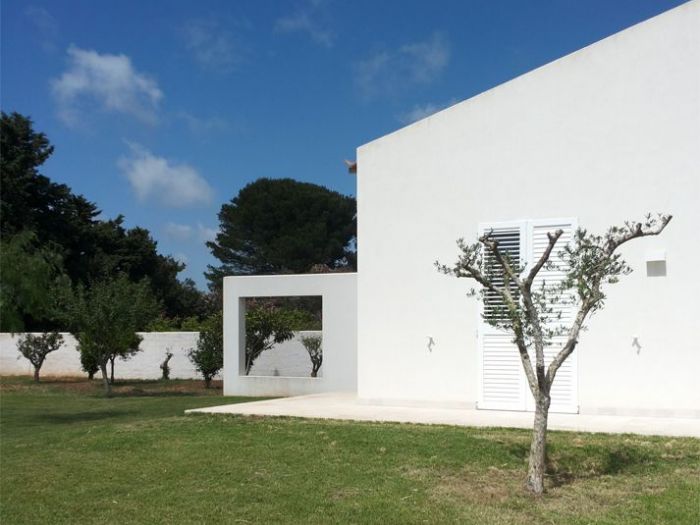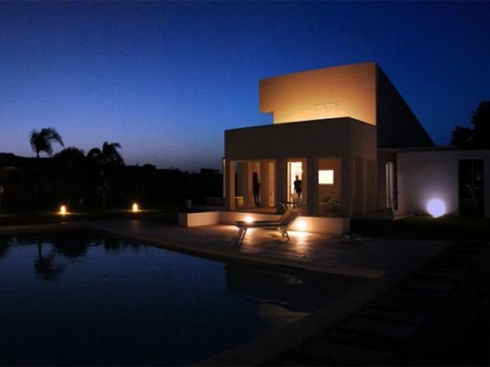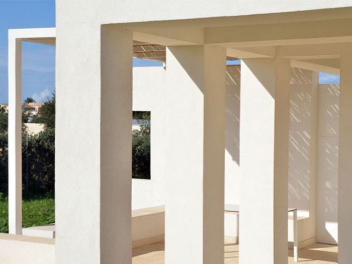 Il progetto pone particolare attenzione all’orientamento e ai venti dominanti, continui e molto forti in questo angolo di sicilia, con invenzioni architettoniche preposte alla protezione delle parti esterne, patii e porticato, in cui si svolge la maggior parte della vita quotidiana della casa. Il rapporto tra interno ed esterno, i moti convettivi naturali interni, l’utilizzo di materiali naturali tipicamente locali, il meticoloso studio della vegetazione e delle parti a verde, il posizionamento dell’alta recinzione in blocchi di tufo intonacati, la piscina ed il locale di servizio spogliatoio e magazzino, il campetto sportivo e la zona pic-nic sotto i secolari pini d’aleppo (pinus halepensis) sono gli elementi che completano il progetto.