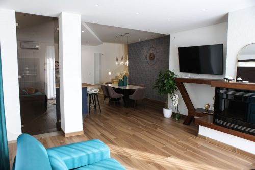Quando ho visionato per la prima volta la villa, non era altro che una grande villa come tutte le altre, rimanendo all’ingresso vedevo solo muri contro muri,tutto cupo, ed era strano per una casa di 300mq sentirsi come se fossi all’interno di un monovano; ma qualcosa al momento in cui sono entrato mi ha fatto vedere oltre, ho immaginato un openspace al primo piano eliminando tutto il superfluo e catturando la scala in un corpo di cristallo. Dopo diversi incontri con i clienti, ho cercato di capire i propri gusti, stili, passioni e amori, questo mi ha permesso di rispecchiare le loro personalità nei loro ambienti; ambienti parlo al plurale perché come in ogni mio progetto, ogni stanza deve essere diversa, sia di stile, e sia di forme, come se fossero diverse scene di un teatro; gli ambienti diversi suscitano emozioni e stati d’animo, per questo secondo me devono essere totalmente differenti, gli abitanti non devono essere ospiti della propria casa ma devono rispecchiarsi e durante la giornata possono sentirsi meglio in un’ambiente che in un altro. La casa prende il nome di gold house, perché un filo conduttore unisce gli ambienti differenti di ogni piano, ed è il color “oro”, ho cercato ad accostare colori, materiali, stili, pur differenti ma che possano accostarsi perfettamente all’oro, filo conduttore lo è un gioco di tondini in ferro che si intrecciano tra diagonali e verticali per tutto il corpo scala avendo la maggior parte un color canna di fucile singoli elementi oro; un elemento così moderno che riesce ad unirsi perfettamente all’intera abitazione a volte “traditional” a volte “modern”. Primo piano: ambiente totalmente radical chic, total black e white; materiale predominante è il marmo, un materiale rigido che in questo progetto riesce ad intersecarsi con materiali come il legno, cristallo e pietre preziose. Già nei palazzi del ‘800 l’accostamento di un pavimento in marmo veniva affiancato a una boiserie che incorniciava l’imperiali stanze, e nell’open space della gold house ho voluto reinterpretare tutto ciò, aggiungendo un tocco di modern con una parete squadrata totalmente in marmo bianco e aggiungendo dei corpi illuminanti moderni oltre ad avere pochi ma giusti arredi sempre modern che dialogo con icone di design traditional come i divani frau chester. Piano terra: ambiente stile industrial e modern, basato su una scala di grigi; qui troviamo protagonista non un materiale ma la forma, giochi di volumi compongono un camino che in questa dimensione diventa il cuore pulsante dell’ambiente, ad abbracciare il tutto è un intreccio di listelli di betulla sbiancato che da parete si sviluppano in altezza per quasi tutto il soffitto. Una linea sottile in pietra lavica delinea un gioco divertente ed interessante che si farà notare senza chiedere agli altri di guardarlo.