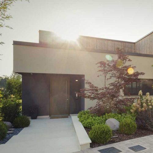 La residenza persegue l'obiettivo di proteggere la vita privata e offrire, dal suo interno, brani panoramici del paesaggio. Il progetto nasce dal tipo a patio e lo declina scomponendo l'edificio in due blocchi a "l" posti su due livelli diversi. Il corpo inferiore accoglie i locali diurni e si ancora al terreno [...]