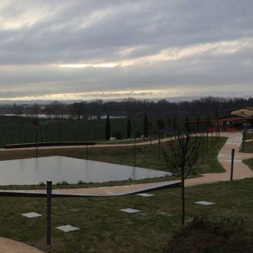 L’anfiteatro delle piscine è parte delle raffinate opere che punteggiano il parco-giardino di circa cinquanta ettari della villa maffei-sigurtà a valeggio sul mincio. L’anfiteatro, costruito come riserva di acqua per il parco e piscine per i bagni estivi, si trovava in stato di forte degrado, evidenziando in particolare il crollo parziale delle strutture murarie delle vasche-piscine [...]