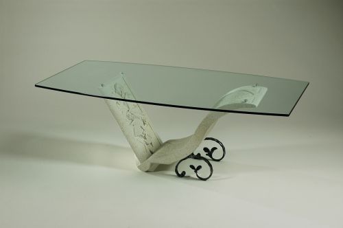 Articolo 3ef-1 Tavolino da salotto arpa Finitura: effetto pietra ( superficie ruvida ) Misure: cm 110 x 65 Altezza: cm 42 Peso: kg. 67 Vetro: rettangolare – temperato Filo lucido – spessore: cm 1