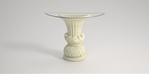 Articolo 3f2-1 Tavolino da salotto palladio Finitura: effetto pietra ( superficie ruvida ) Misure: ø cm 80 Altezza: cm 47 Peso: kg. 49 Vetro: rotondo – temperato Filo lucido – spessore: cm 1
