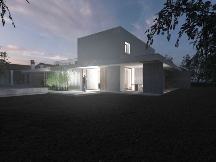 Progetto per una nuova unità residenziale collegata con un edificio esistente tramite una pensilina. L’edificio si sviluppa su 2 piani fuori terra dove trovano spazio a piano terra la zona giorno con una piccola sala biliardo e a piano primo la zona notte.