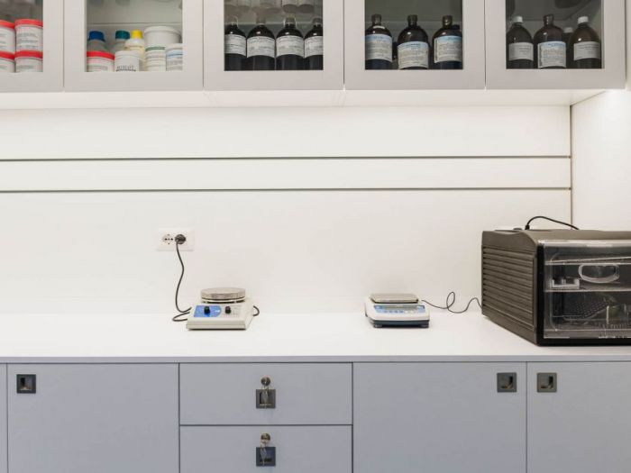 Shooting di un laboratorio galenico. Il progetto è stato realizzato per la realizzazione di materiali informativi da inviare ad altri professionisti (studi medici/veterinari), case farmaceutiche e cosmetiche, aziende sanitarie, e strutture ospedaliere.