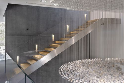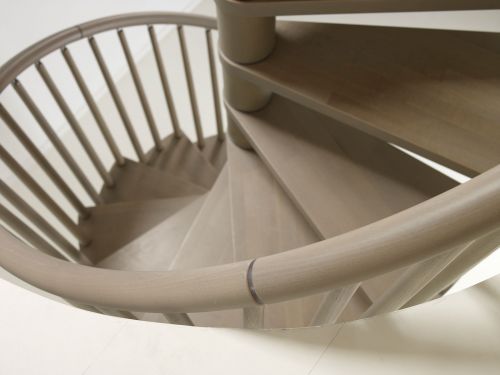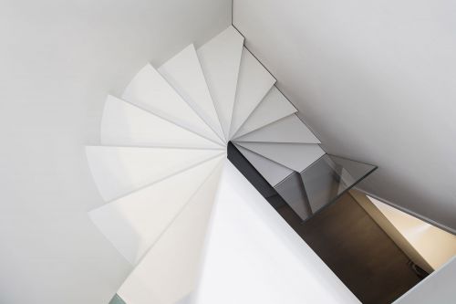 La scala è elicoidale e un tutt’uno con lo spazio architettonico.