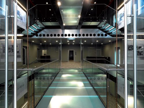 Fontanot ha realizzato su misura la scala e le passarelle che caratterizzano fortemente questo nuovo spazio restaurato dell’azienda sabaf a ospitaletto. Il progetto dello studio falconi presenta una scala in acciaio e vetro; la struttura è in acciaio al carbonio trattato con ematite e i gradini sono in vetro temperato chiaro, con satinatura nella parte del calpestio.le ringhiere, anch’esse in vetro temperato, presentano un corrimano in acciaio inox.