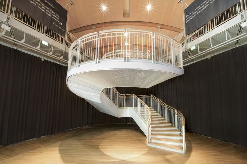 All’interno dell’unicredit pavillion, spazio destinato a meeting, eventi e conferenze nel cuore di porta nuova, sorge la scala realizzata da fontanot, che collega l’auditorium del piano terreno alla passerella dell’arte. La scala realizzata con strutture in acciaio di carbonio verniciato ral 9018 è a rampa elicoidale autoportante e predisposta per lo sbarco dell’elevatore collocato nella parte centrale.