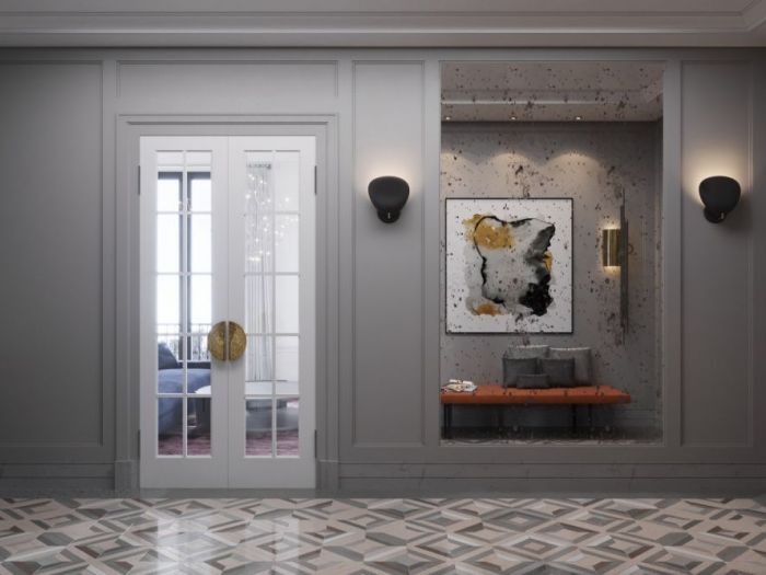 Un progetto di design di un gruppo di appartamenti in un palazzo a mosca. Tutti gli appartamenti devono avere lo stesso stile, adattato alle vare metrature. In questo progetto i cliente chiede un stile francese eclettico.
