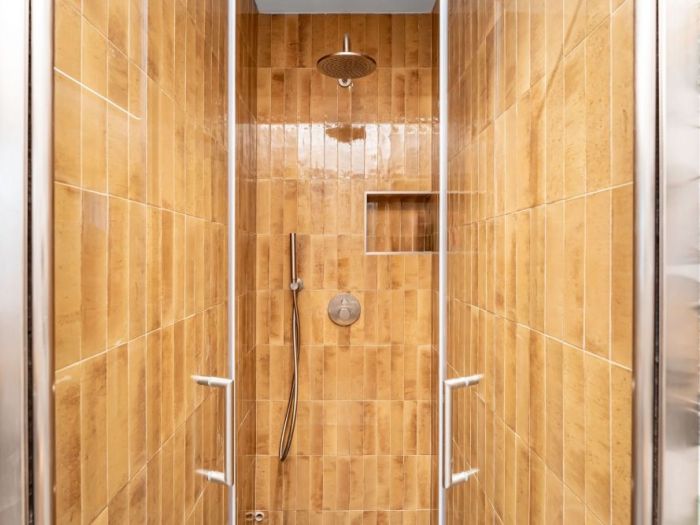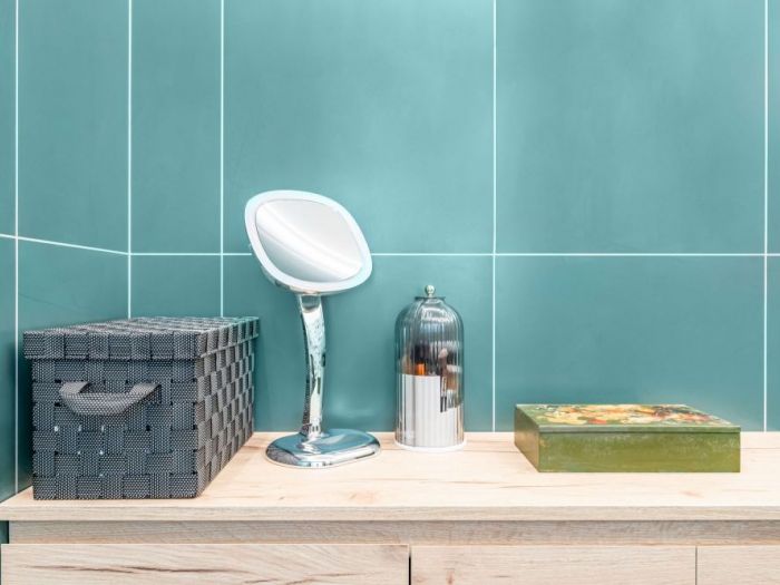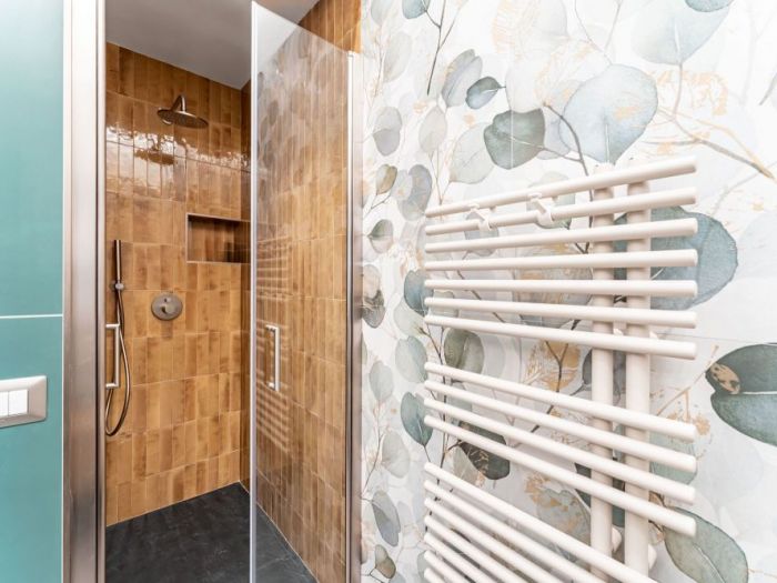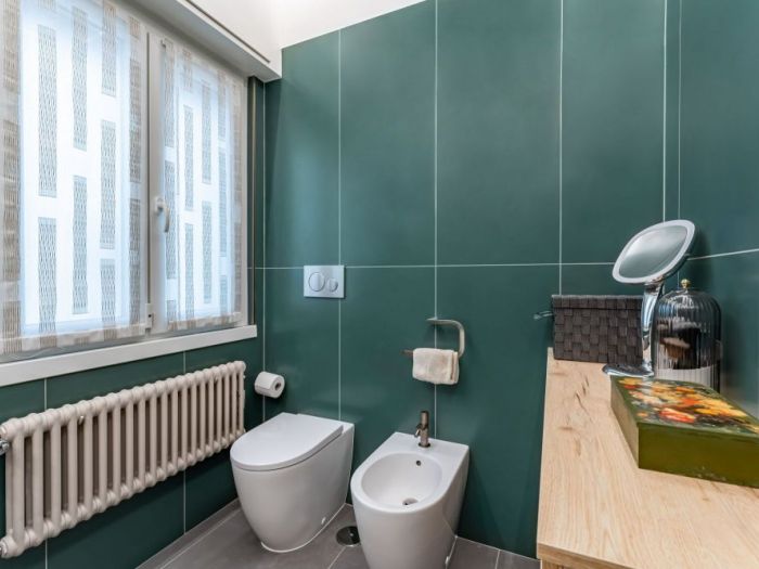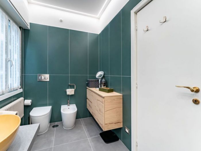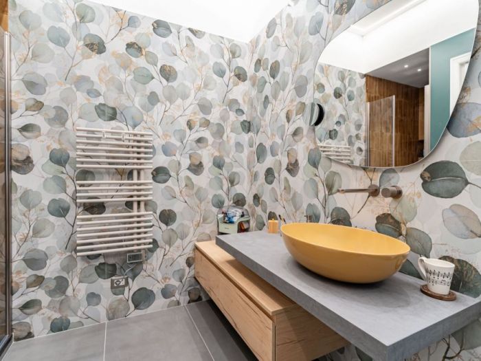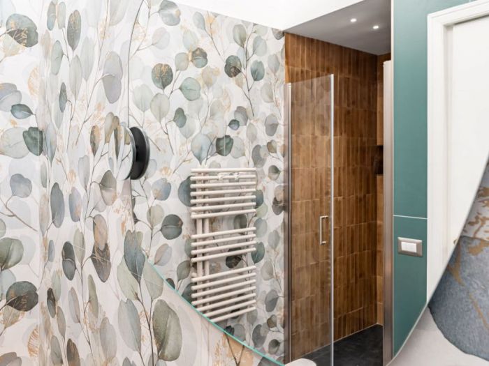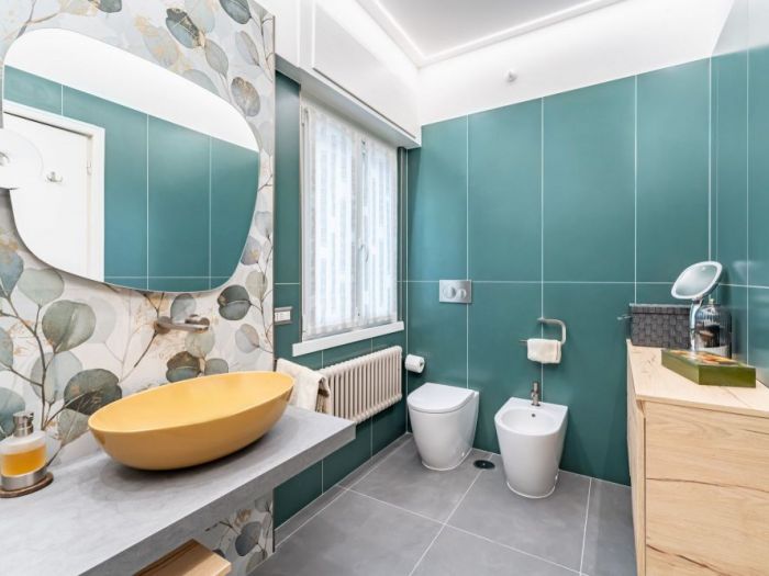 Un bagno colorato dove ogni cosa è stata scelta con tanta cura. Un bagno come una piccola opera 'arte. Un bagno dove si trova tanto relax dopo una lunga giornata.