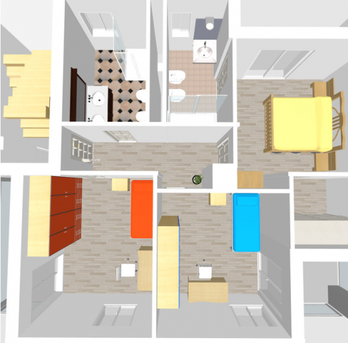 Il progetto prevedeva la divisione in due unità immobiliari di una villa. La sfida era rappresentata dalle altezze importanti presenti e dallo spazio contenuto rispetto alle esigenze dei clienti. Si voleva un salone cucina, due camere da letto di cui la padronale fornita di cabina armadio e bagno privato, uno spazio studio/lettura per rilassarsi e dipingere, il progetto è in fase di completamento, allo stato attuale carico i disegni preliminari del 3d e lae foto della cucina già in parte realizzata