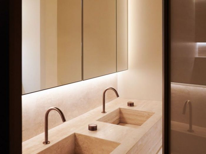 Venature vengono enfatizzate grazie ai giochi di luce indiretta. Il bagno di servizio è invece