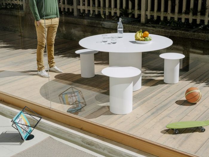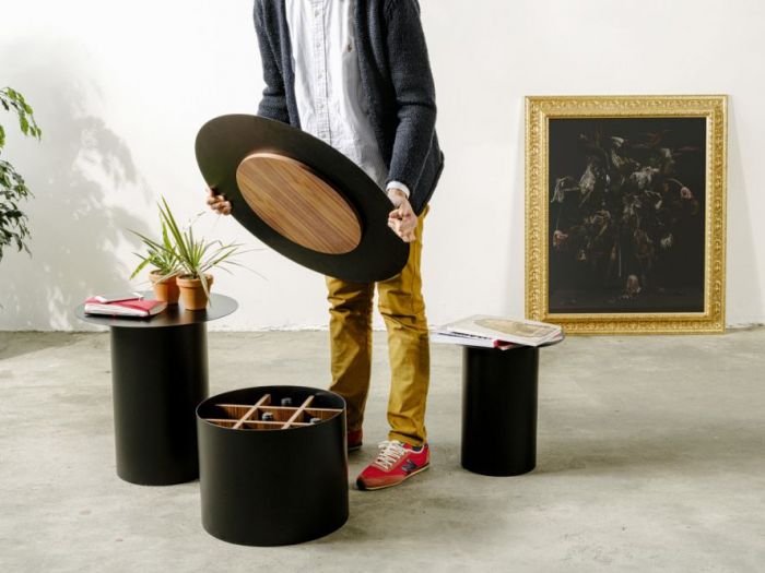 Ita - all'inizio era soltanto un chiodo piantato su una parete. Ma l'immaginazione lo ha voluto trasportare a terra. L'ingegno gli ha cambiato la grandezza e modificato un po' le forme. Si ringrazia il chiodo fisso per avere trasformato un'intuizione in materia. Per una collezione funzionale e di forte impatto estetico. Eng -