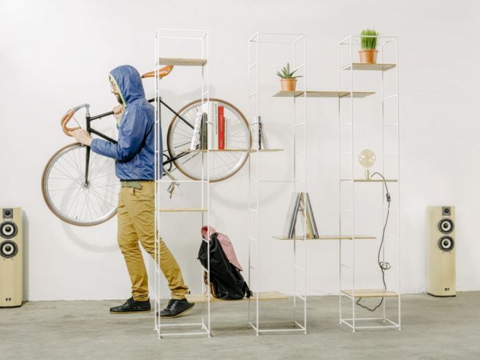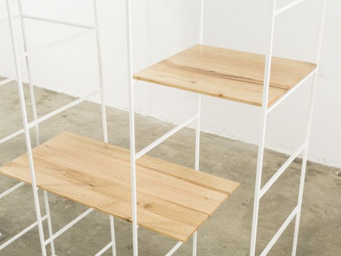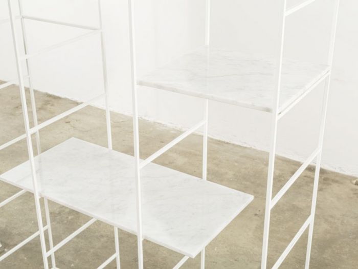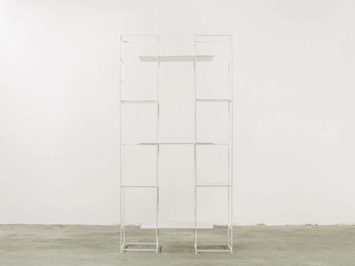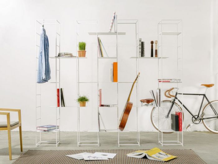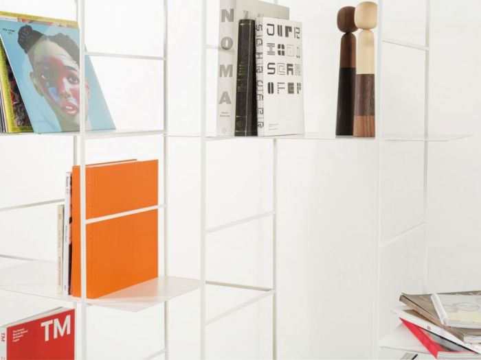Eng - a geometric and thin module repetition creates a space and volume succession. The product lightness is emphasized by the alternation of shelves which seem to hang in a precarious balance. A dynamic bookcase which can be adapted to all domestic space. Ita - la ripetizione di un modulo geometrico dalle linee sottili crea un susseguirsi di spazi e volumi. La leggerezza della struttura è messa in risalto dall'alternanza delle mensole, sospese e quasi in bilico fra loro. Una libreria dinamica e adattabile ad ogni spazio domestico. Una libreria supermodulare.
